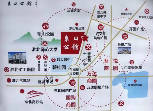 淮北市杜集區(qū)東山公館緊鄰相山公園,淮北師范大學(xué)、二中東區(qū)、師大附中、淮礦醫(yī)院、碧桂園、國購中心、萬達(dá)、吾悅廣場等四大商業(yè)中心環(huán)繞四周,近在咫尺,東崗樓立交橋的改建開通,東山公館更加凸顯出其地段的優(yōu)越,形成城北商業(yè)發(fā)展淮北核心商業(yè)中心。
