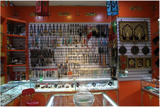 藏飾品給人的感覺往往是另類的,神秘的,因此吸引了眾多的目光。在現(xiàn)代社會中,要想找到一件與眾不同的飾物實在不容易,很多時尚女性開始將目光轉(zhuǎn)向了藏飾品。這家小店所出售的飾品一般只有一件,很少有重樣的。