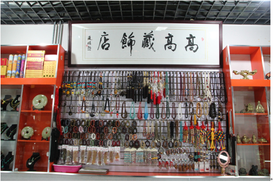 店里的老板小高是個(gè)酷愛(ài)藏飾的女人,她身著一件緊身黑色毛衣,脖子上掛著一串孔雀藍(lán)的牦牛骨項(xiàng)鏈,手腕上戴著藏銀手鐲,看起來(lái)既古樸又有幾分神秘氣息。小高覺(jué)得古樸粗獷的藏飾不僅戴出了個(gè)性,還能給人遐想的空間。由于酷愛(ài)藏飾品,幾年前開了這家小店,店雖小但品種齊全,物美價(jià)廉。貨真價(jià)實(shí)、薄利多銷是小高的開店宗旨。每天來(lái)小高小店淘寶的人絡(luò)繹不絕,大多奔著物美價(jià)廉而來(lái)。