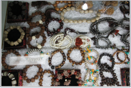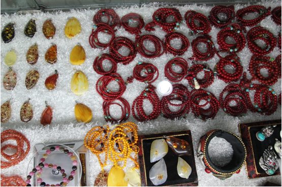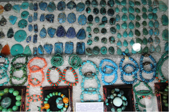 走進(jìn)莫家街幾家藏飾店里,項(xiàng)鏈、手鐲、戒指、耳環(huán)看得我們眼花繚亂,再走進(jìn)高高藏飾小店里,心已經(jīng)被濃濃的藏族飾品所吸引。它們由天珠、藏銀、牦牛骨、綠松石等富有西藏民族特色的材料制成,鏤刻、鑲嵌等工藝都巧妙地展示著藏飾的設(shè)計(jì)風(fēng)格。店里傳統(tǒng)的藏 飾給人古老、粗獷的感覺(jué),另外這里的藏飾也有一些兼容了精細(xì)、小巧的設(shè)計(jì)。