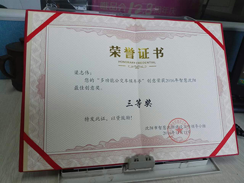 我們?cè)?jīng)羨慕迪拜有空調(diào)的公共候車亭,曾經(jīng)向往多年后我們沈城也許會(huì)有一個(gè)能遮風(fēng)避雨,曬不著凍不著的候車環(huán)境。梁志偉的發(fā)明不僅滿足了這些基本條件,它的功能遠(yuǎn)遠(yuǎn)超越了候車的單一性,比如:遮風(fēng)避雨避寒,冬暖夏涼,殘疾人可以在里面賣報(bào)紙、飲料等,既解決了殘疾人就業(yè)又給社會(huì)做貢獻(xiàn)。接入wifi,方便候車人;設(shè)置ATM取款機(jī),可進(jìn)行千元的小額取款;晚上是治安崗?fù),可以讓屬地派出所民警和?lián)防隊(duì)員到里面值守,有險(xiǎn)情、有報(bào)警的情況,可以到這里來報(bào)警;設(shè)置取暖設(shè)施,為候車人和環(huán)衛(wèi)工人等提供取暖之地;配有網(wǎng)上繳費(fèi)設(shè)置,老百姓可利用等車時(shí)間繳納電費(fèi)、水費(fèi)、話費(fèi)等;設(shè)有早餐購買區(qū),方便候車人等車時(shí)間購買早點(diǎn);智慧城市終端體現(xiàn)出來,提供大學(xué)生就業(yè)機(jī)會(huì)。設(shè)置電腦、wifi,方便大學(xué)生利用電腦進(jìn)行工作等等。