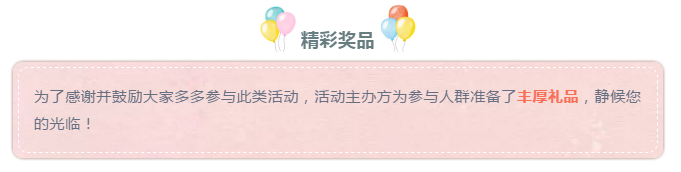 為了感謝并鼓勵(lì)大家多多參與此類活動(dòng),活動(dòng)主辦方為參與人群準(zhǔn)備了豐厚禮品,靜候您的光臨!