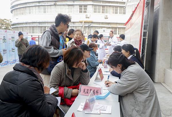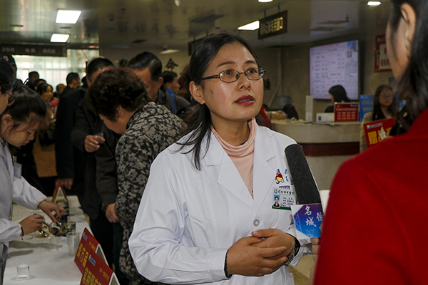 時值立冬時節(jié),室外寒氣襲人,室內(nèi)卻暖意融融,氣氛熱烈。活動現(xiàn)場,徐州市中醫(yī)院特別邀請了冠心病組首席專家邱勇、針灸腦病科主任醫(yī)師孫菊光、呼吸科副主任中醫(yī)師丁惠卿、風(fēng)濕腎病科副主任醫(yī)師鄒榮等數(shù)位專家在門診樓前現(xiàn)場義診,為市民朋友一對一診斷開方。在四樓的膏方門診、各科室專家門診也同時問診開方,為前來咨詢就診的市民把脈健康,答疑解惑。