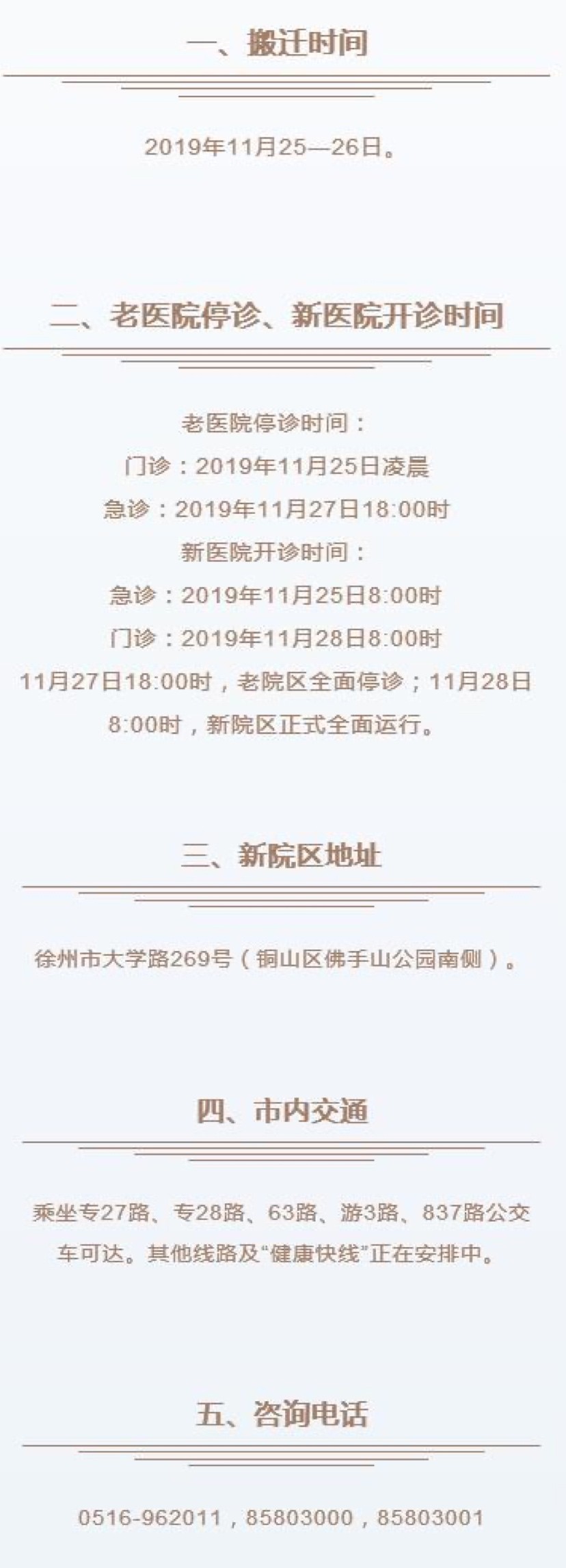 徐州市第一人民醫(yī)院新醫(yī)院建設(shè)在市委市政府的領(lǐng)導(dǎo)支持下全面竣工,已符合搬遷條件。為保障廣大群眾在醫(yī)院搬遷過(guò)程中獲得滿意服務(wù),現(xiàn)將醫(yī)院搬遷有關(guān)事項(xiàng)公告如下: