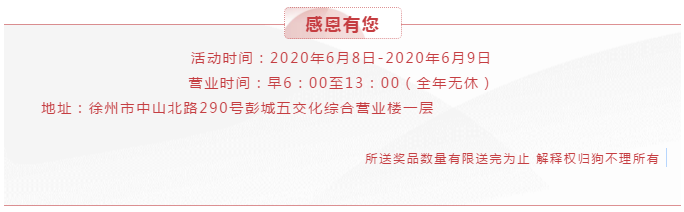 3、2020年6月8日-6月9日,店慶期間,消費滿38元,即可參與抽獎活動一次(中獎率為百分之百)。