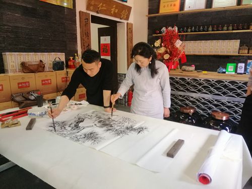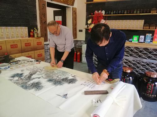 淮北市美術(shù)家協(xié)會一行蒞臨濉溪石板酒業(yè)文化交流中心創(chuàng)作并贈送書畫作品