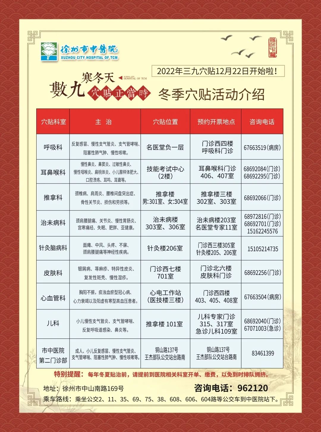 數(shù)九寒冬天 ,穴貼正當(dāng)時(shí),徐州市中醫(yī)院2022年冬季穴貼,12月22日開(kāi)始了。
