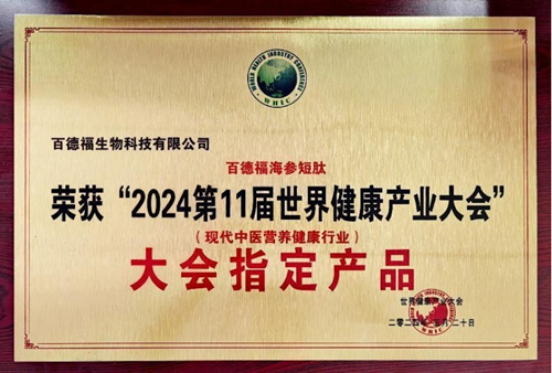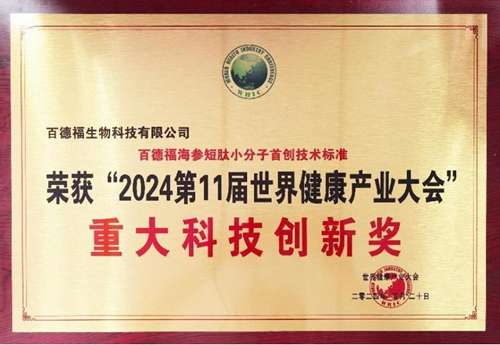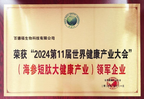 會(huì)上,中國工程院院士樊代明先生為大家進(jìn)行頒獎(jiǎng),百德福生物科技有限公司榮獲了“重大社會(huì)貢獻(xiàn)獎(jiǎng)”“海參短肽大健康產(chǎn)業(yè)領(lǐng)軍企業(yè)”“重大科技創(chuàng)新獎(jiǎng)”“2024第11屆世界健康產(chǎn)業(yè)大會(huì)指定產(chǎn)品”等多項(xiàng)榮譽(yù)。這些榮譽(yù)的獲得,讓我們深感責(zé)任重大,也激勵(lì)著公司在未來繼續(xù)努力,不斷前行。