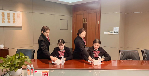 為進(jìn)一步促進(jìn)農(nóng)商行項目會務(wù)工作規(guī)范化,提高會務(wù)人員服務(wù)意識與服務(wù)技能。3月18日中午,昆通物業(yè)駐農(nóng)商行項目會務(wù)服務(wù)中心組織全體會務(wù)人員開展了會務(wù)服務(wù)技能培訓(xùn)。此次培訓(xùn)分為理論學(xué)習(xí)、操作技能和禮儀形體培訓(xùn)三部分,主要包括禮儀站姿、茶水服務(wù)、會務(wù)情景規(guī)范服務(wù)、服務(wù)意識和突發(fā)問題應(yīng)急處置等內(nèi)容?,F(xiàn)場模擬學(xué)習(xí)了會場物品擺放位置及會前具體操作流程;會中茶水服務(wù)、語言溝通技巧、應(yīng)急情況處置的技巧和方法;以及會后對會議相關(guān)用品高效有序清場。