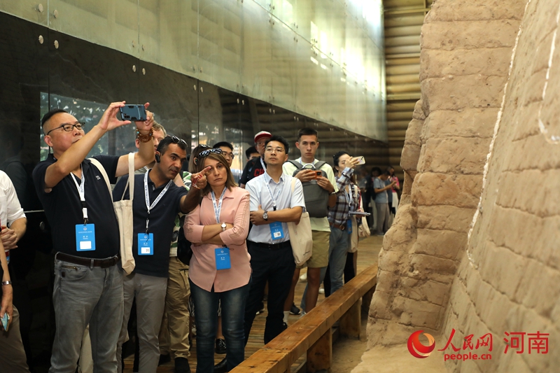 中外媒體記者參觀鄭州商代都城遺址博物院。人民網(wǎng)記者 王佩攝