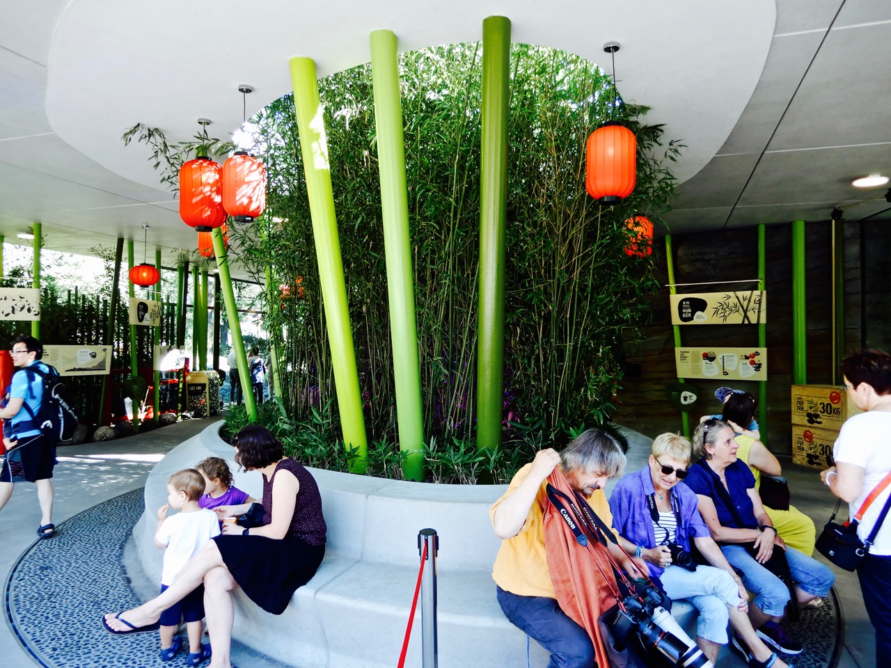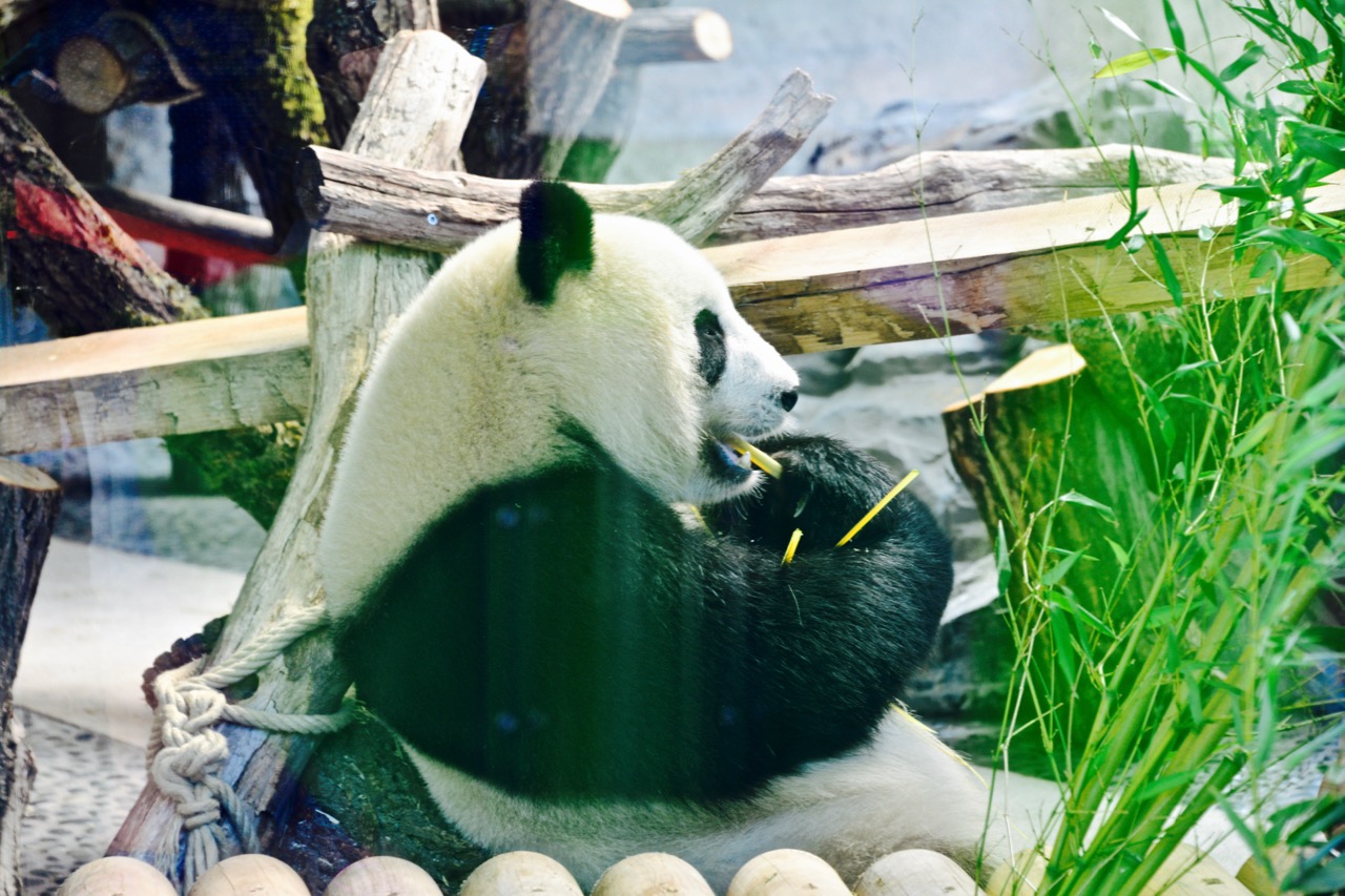 熊貓館里,人們看熊貓看累了,就坐下來休息,休息好了再接著看。兩只大熊貓作為中德友誼的象征,最重要的工作和任務(wù)就是賣萌和吃吃喝喝。