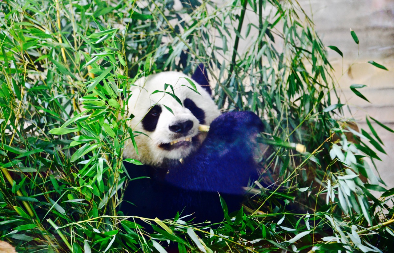 據(jù)說為了讓兩只大熊貓更好地適應(yīng)柏林的環(huán)境,中德專家們費(fèi)盡心思,在飲食和環(huán)境上做足了功夫,除了進(jìn)口的新鮮竹子,還有中國飼養(yǎng)員每天專門給兩只大熊貓?zhí)刂茽I養(yǎng)豐富的熊貓松餅。這待遇也沒誰了。我也沒分清楚哪一個(gè)是夢夢哪一個(gè)是嬌慶,反正兩只熊貓一人占據(jù)著一個(gè)大房間,都正在舒服的大吃特吃呢。