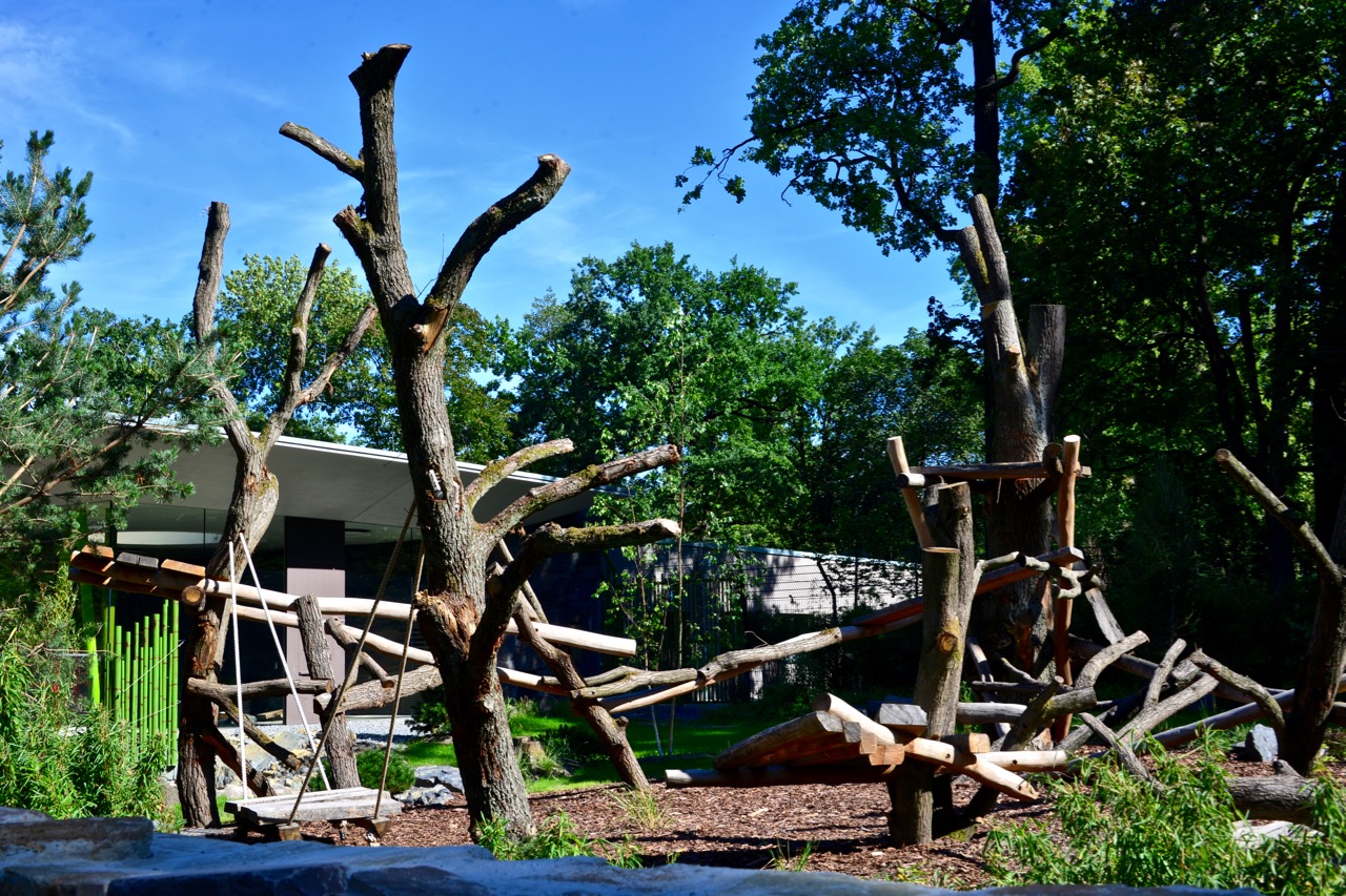 為迎接這兩只大熊貓,柏林動物園可是下了血本,用1千萬歐元修繕了熊貓館。整個(gè)熊貓館占地5480平方米,館內(nèi)種植了815棵竹類植物,還有各種樹木和灌木;按照大熊貓獨(dú)居的習(xí)性,各自有80平方米的室內(nèi)活動區(qū)域,和1000平方米的后花園,里面有熊貓喜歡的竹林、小溪和巖石。熊貓館還配備了全自動感應(yīng)燈控系統(tǒng)、溫控系統(tǒng)、新風(fēng)系統(tǒng)等硬件設(shè)施。說熊貓館是超級豪宅毫不為過。