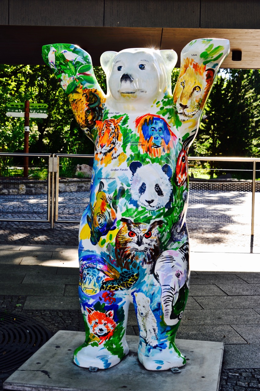 走進(jìn)柏林動物園,入口處的吉祥物“柏林熊”身上畫滿了動物,而大熊貓的大頭就在正中。原來這是在7月5日來自中國的“夢夢”和“嬌慶”正式與德國公眾見面時(shí),在柏林熊身上專門畫的。德國人做事好有心啊。