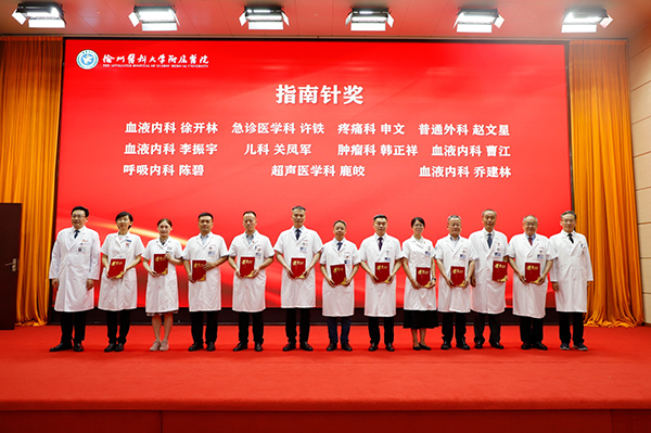 院黨委書記呂凌、院長金培生為榮獲“指南針獎”的血液內(nèi)科徐開林、急診醫(yī)學科許鐵、疼痛科申文、普通外科趙文星、血液內(nèi)科李振宇、兒科關鳳軍、腫瘤科韓正祥、血液內(nèi)科曹江、呼吸內(nèi)科陳碧、超聲醫(yī)學科鹿皎、血液內(nèi)科喬建林等11位醫(yī)師頒獎。