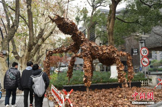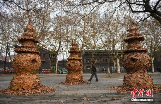 12月12日,以落葉裝扮的巨型“螞蟻”吸引行人的關注。近日,中國美術學院舉辦秋葉藝術節(jié),眾多以落葉設計的藝術作品亮相杭州西湖邊,成為一道獨特的風景。中新社記者 王剛 攝
