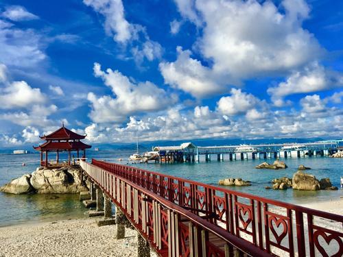 電影《私人訂制》在蜈支洲島的取景地現(xiàn)在也同樣是游客的打卡地,島上風景如畫,浪漫唯美。乘船上島,可以欣賞蜈支洲島臨海山石嶙峋陡峭,直插海底,驚濤拍岸,蔚為壯觀。而島的中部山林草地起伏逶迤,綠影婆娑。北部海灘沙質(zhì)潔白細膩 ,恍若玉帶天成。