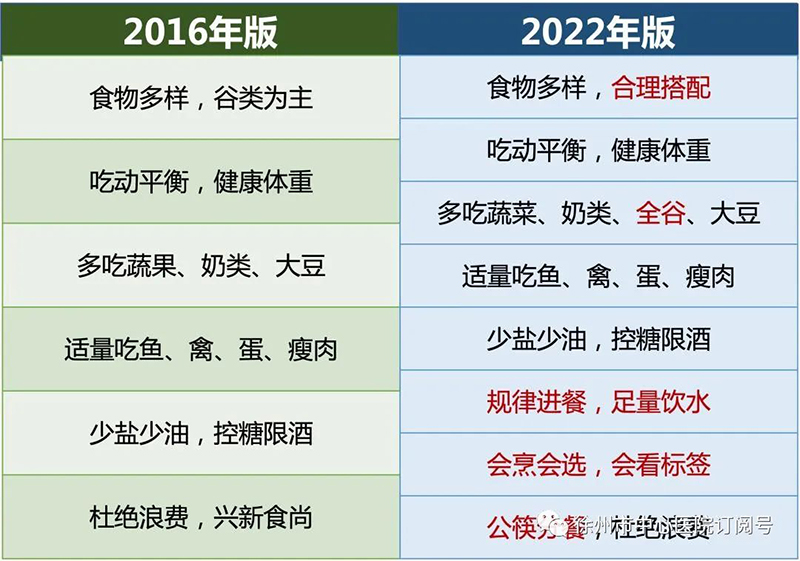 一、2022年版《膳食指南》 由2016年版的6條內(nèi)容增加為8條,如下圖所示: