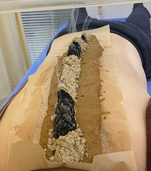 督灸是中醫(yī)的一種傳統(tǒng)灸法,主要是在后背的督脈,也就是在脊柱上進(jìn)行施灸的一種方法。從大椎穴到腎俞穴進(jìn)行分段或者全段的艾灸,根據(jù)不同的體質(zhì)會相應(yīng)的在脊柱正中線撒上具有針對性的藥粉,一般將藥粉分為祛風(fēng)散寒、扶陽固脫、補(bǔ)腎益氣、補(bǔ)氣養(yǎng)血、溫經(jīng)通絡(luò)5大類,每種藥粉添加了數(shù)十味名貴藥材,如麝香、紅花、當(dāng)歸、沉香、羌活、乳香、沒藥等。粉上再鋪以5cm寬、2.5cm高的姜泥1條,姜泥上鋪3cm寬、2.5cm高的艾絨,下寬上尖。形成截面為等腰三角形的長蛇形艾柱。然后,點燃艾柱頭、身、尾3點,讓其自然燒灼。待艾柱燃盡后,再鋪上艾絨復(fù)灸,每次灸2~3壯,7~10天施灸一次,10次為一個療程。因為形狀像蛇,所以也叫做“長蛇灸”。具有調(diào)節(jié)陰陽、補(bǔ)益臟腑、溫補(bǔ)督脈、扶正祛邪、清熱解毒、化濕通絡(luò)等作用。
