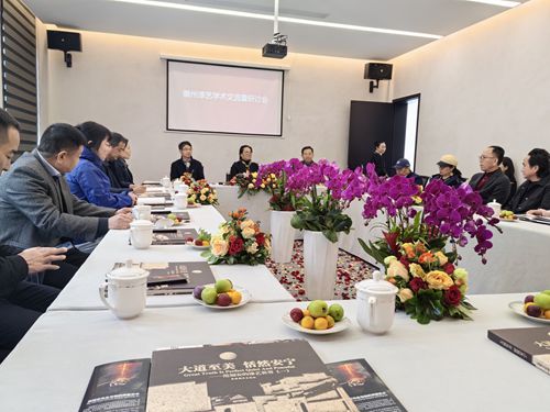 當(dāng)日,在范福安漆藝非遺館還舉辦了“徽州漆藝學(xué)術(shù)交流暨研討會”,與會領(lǐng)導(dǎo)、專家學(xué)者就徽州漆藝未來的發(fā)展展開了深入討論。范福安先生表示:中國漆畫是在繼承和發(fā)展豐富的傳統(tǒng)漆工藝基礎(chǔ)上,融合現(xiàn)代審美理念,將漆工藝技法運用到現(xiàn)代漆畫創(chuàng)作之中,所創(chuàng)作的漆畫作品與其他畫種作品一樣要求要有深度,具有時代特征,反映時代脈搏。