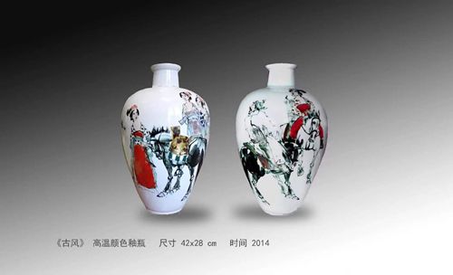 丁之貴認為,中國古典“立體主義”的呈現(xiàn),最獨特的一種是絹本、紙本外的“瓷本”--整個瓷器面“多層次紋飾”結(jié)構(gòu)、漢字與圖像糅合等。因此,從紙本到瓷本載體的轉(zhuǎn)換,是每一個藝術(shù)家來景德鎮(zhèn)從事中國畫陶瓷藝術(shù)創(chuàng)作的第一課。中國畫陶瓷作品創(chuàng)作,需要藝術(shù)家牢固樹立創(chuàng)新的理念,自覺遵循從絹本、紙本到“瓷本”的載體轉(zhuǎn)換規(guī)律。既要熟悉坯胎釉料等材料的特點,又要熟練掌握在“瓷本”載體上的繪畫技法,努力將自己的作品更自由地在陶瓷上揮灑。