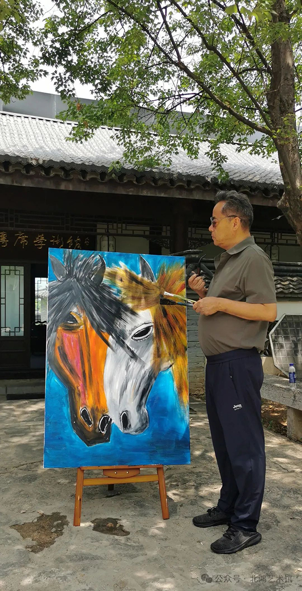 北鴻踏入張伯英藝術(shù)館,楚漢文脈的厚重與藝術(shù)傳承的溫度,化作創(chuàng)作靈感的星火。在這承載著彭城千年文脈的殿堂,藝術(shù)的邂逅悄然發(fā)生。北鴻以超印象詩畫風(fēng)格,將對藝術(shù)傳承的敬意與熱戀般的創(chuàng)作熱忱,注入《雙駿圖》的創(chuàng)作,讓古老文脈與現(xiàn)代藝術(shù)表達(dá)在此處碰撞、融合,開啟一場屬于藝術(shù)的奇妙邂逅之旅。