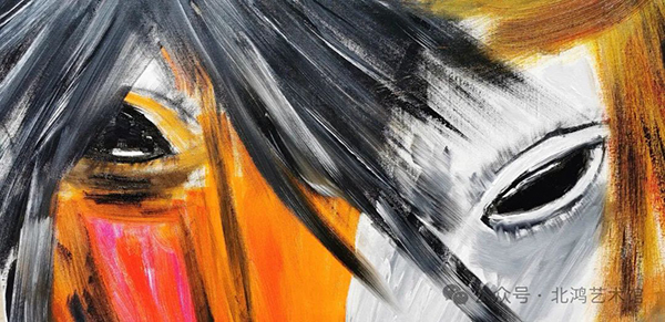 超印象詩畫風(fēng)格,為這場邂逅施加藝術(shù)魔法。北鴻以粗獷筆觸打破常規(guī)繪畫的細(xì)膩桎梏,那如“色彩暴君”般、有著馬蒂斯式肆意與震撼的色彩張力,讓色彩在自由揮灑中碰撞出獨(dú)特藝術(shù)韻律 。鮮明色彩對比不再是簡單的視覺沖擊,而是成為傳遞邂逅情緒、熱戀氛圍的載體。藝術(shù)抽象表現(xiàn)手法,掙脫現(xiàn)實(shí)具象的束縛,使雙駿的形象超越馬的實(shí)體,成為藝術(shù)邂逅與熱戀情感的象征符號,讓觀者在抽象與具象的邊界游走,沉浸式體驗(yàn)這場藝術(shù)邂逅帶來的心靈震撼與情感觸動。