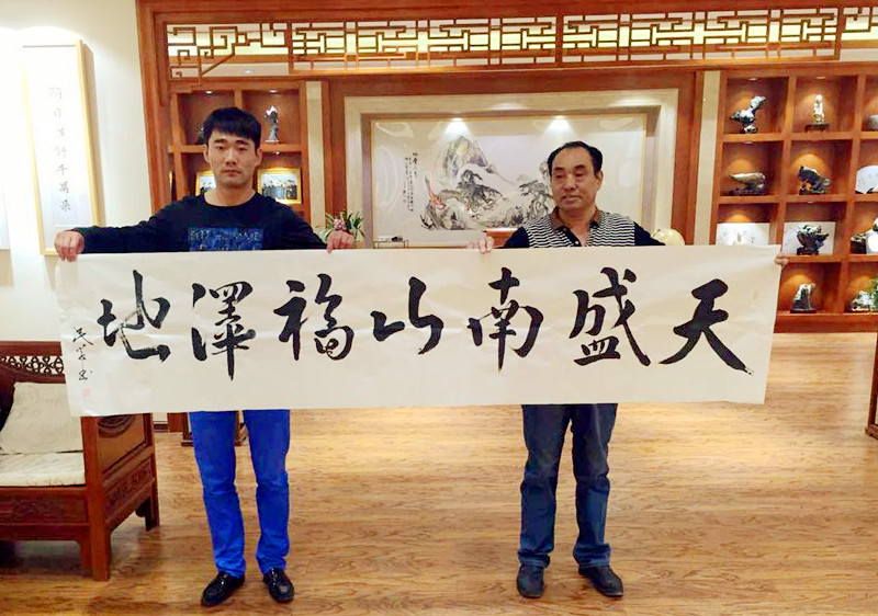 活動(dòng)期間,王民學(xué)先生現(xiàn)場(chǎng)揮毫題詞:天盛南山福澤地。筆法遒勁有力,瀟灑俊逸,讓在場(chǎng)的觀眾嘆為觀止。王民學(xué)先生解釋說:“南山,福壽之地,有著極深的漢文化淵源和底蘊(yùn)。‘天行健,君子以自強(qiáng)不息;地勢(shì)坤,君子以厚德載物’,上善若水,澤潤(rùn)南山。在我們淮北市各級(jí)領(lǐng)導(dǎo)的關(guān)懷下,把南山村打造成了一個(gè)遵循自然的新型原生態(tài)山區(qū),一座集旅游觀光、休閑娛樂、生態(tài)度假、餐飲服務(wù)于一體的南山休閑養(yǎng)生基地。有力的打出了精致淮北的一張靚麗名片,而‘天盛南山’就是引領(lǐng)了我們皖北這一領(lǐng)域的風(fēng)云企業(yè),也是我們尋覓城市轉(zhuǎn)型的一個(gè)好的成功的典型,共營(yíng)南山情,共筑中國(guó)夢(mèng)。”