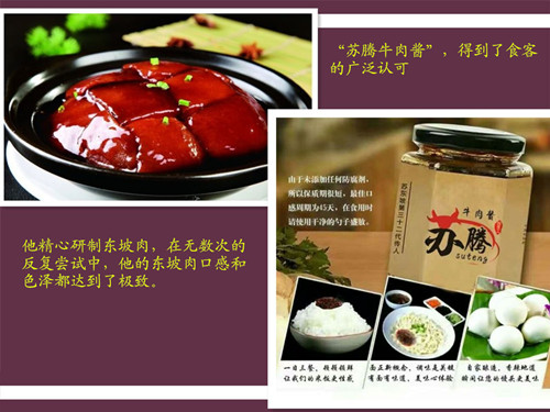 1994年他去了杭州,拜師于杭邦菜大師章乃華的門下。經(jīng)過師父的精心栽培,他很快掌握了杭邦菜,后來在喜得寶大酒店做廚師。由于他這么多年勤奮好學(xué),工作努力,很快就晉升為廚師長。對于常人來說,這是對一個廚師的褒獎。在杭州工作了十四年,為了照顧家庭和年邁父母。他離開杭州回到淮北,自己做起了生意,開了蘇生記酒店。一開始酒店生意異常的火爆,慢慢的也許是管理不善,蘇生記的生意每況愈下,只好忍痛割愛的轉(zhuǎn)讓了。當(dāng)時他就想一個人靜靜的待著,誰都不想理,后來他決定再赴杭州,去西溪學(xué)習(xí)酒店管理,他深刻認識到了酒店管理是多么重要。在他學(xué)習(xí)回來的那段時間里,他精心研制東坡肉,在無數(shù)次的反復(fù)嘗試中,他的東坡肉口感和色澤都達到了極致。石鍋魚也是讓人感到回味無窮的,后來又先后研制了“蘇騰餅”,“蘇騰牛肉醬”,得到了食客的廣泛認可。于是,蘇記尖椒炒雞應(yīng)運而生,店雖不大,前來特意品嘗的顧客紛至沓來。