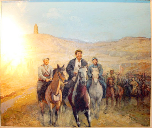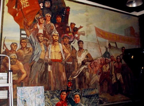 原來,這批油畫是1976年徐州展覽館舉辦的一次“毛澤東思想勝利萬歲的圖片展”。展覽館的吳館長告訴他,方冰山和虞建教授創(chuàng)作的兩幅五米多長的油畫,在76年地震當(dāng)中被用來搭防震棚、蓋煤球了。鐘鑫老師當(dāng)時聽了,心里有一種說不出來的滋味,用現(xiàn)在的話說真是無語。很快,鐘鑫老師從北京高薪聘請專家來來給這一批油畫整理、修復(fù)、制定保管方案,并且陸續(xù)找來作者對原創(chuàng)作品按修舊如舊的方案進(jìn)行修改。他看到偉人油畫的修復(fù)過程,不由的又想起“文革”時期畫偉人的高標(biāo)準(zhǔn)要求。前前后后花了三年多時間,按照文革時期創(chuàng)作偉人油畫的標(biāo)準(zhǔn)對造型、色彩、形象逐一進(jìn)行了調(diào)整。