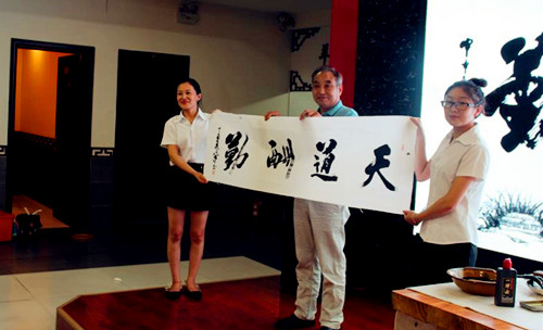 中國黃淮網(wǎng)安徽市場總監(jiān)、中國書法家協(xié)會會員王民學(xué)先生現(xiàn)場創(chuàng)作作品贈送給現(xiàn)場嘉賓。