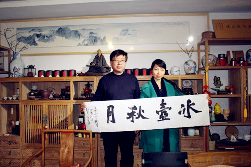 書法家趙先鋒老師現(xiàn)場創(chuàng)作了書法作品贈送李冰老師,希望她東籬之行能留下很多美好的回憶。期待李冰老師再次淮北交流,李冰老師也真誠的邀請大家去北京做客。