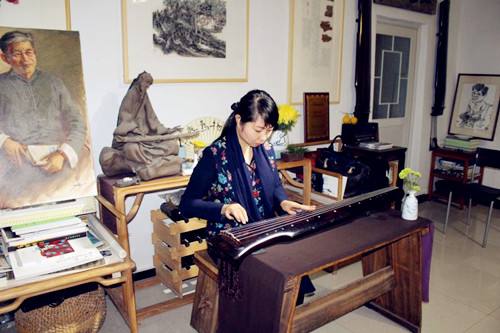 彈奏歇息的期間李冰老師的話明顯多了起來,開始她一直沉默不語。她從小就有對古琴的那份熱愛,古琴當(dāng)時還沒有這么被人重視。古琴是中國最古老的弦樂器,距今已有3000年的歷史,近年來重新煥發(fā)生機(jī)。
