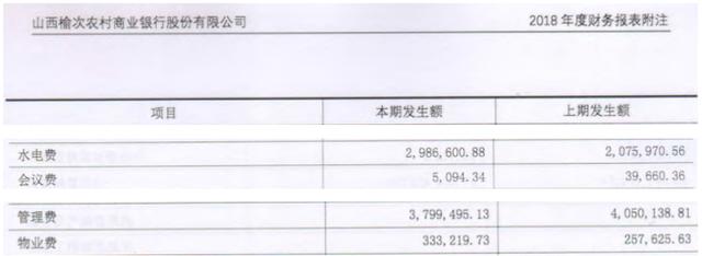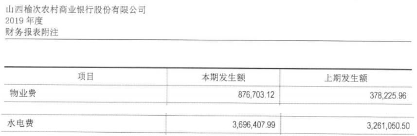 水電費(fèi)支出沒(méi)有明顯的增長(zhǎng),時(shí)視網(wǎng)大膽斷言榆次農(nóng)商行辦公面積并未大幅增加,而物業(yè)費(fèi)增幅卻高達(dá)131%。這物業(yè)收費(fèi)合理嗎? 個(gè)中原因,恐怕榆次農(nóng)商行相關(guān)部門(mén)負(fù)責(zé)人也未必清楚,因?yàn)?019年報(bào)的物業(yè)費(fèi)、水電費(fèi)科目與2018年報(bào)相悖。