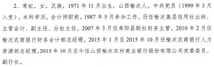 無(wú)獨(dú)有偶,現(xiàn)任黨委委員、副行長(zhǎng)常虹1971年11月出生,1987年5月參加工作,也就是說(shuō)不到16歲就參加工作,入黨提干,考學(xué)歷評(píng)職稱(chēng),更是巾幗不讓須眉。