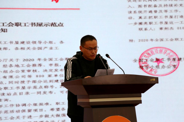 滿忠考部長對邳州農(nóng)商銀行職工書屋建設(shè)取得的豐碩成果表示肯定,并現(xiàn)場宣讀了《2020年全國工會職工書屋示范點名單》。