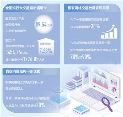 這一點(diǎn)在銀聯(lián)數(shù)據(jù)中得到了印證。涂曉軍介紹,一季度,銀聯(lián)網(wǎng)絡(luò)交易金額較去年同期增長30%,長三角地區(qū)同比增幅超過40%;3月份和清明節(jié)假期前一周,航空售票的消費(fèi)筆數(shù)同比增幅分別為70%和90%;“五一”假期期間,銀聯(lián)網(wǎng)絡(luò)交易金額達(dá)到1.91萬億元,較去年同期增長5.5%。
