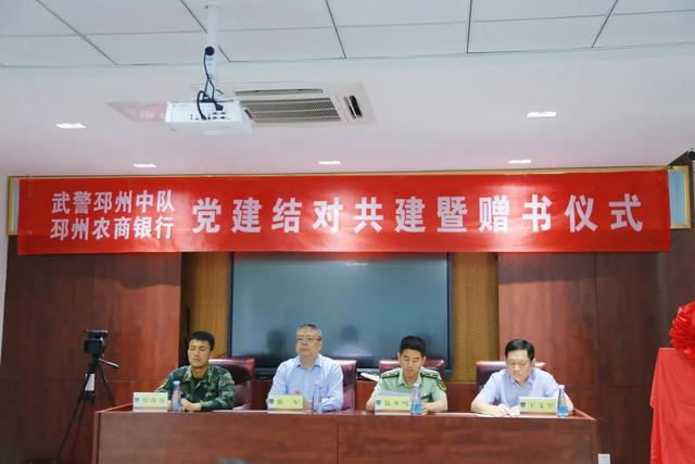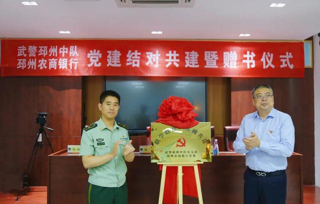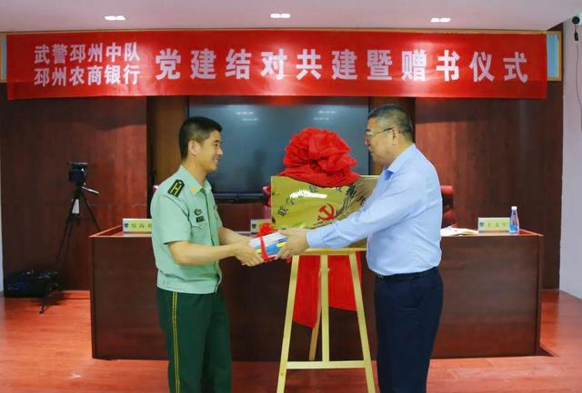 邳州農(nóng)商銀行與武警邳州中隊(duì)成功開展黨建共建并舉辦七一贈(zèng)書儀式