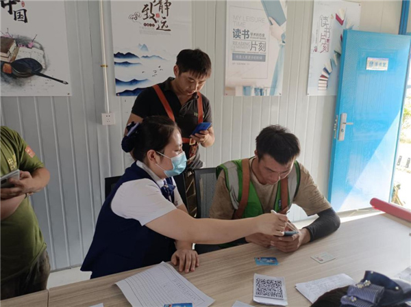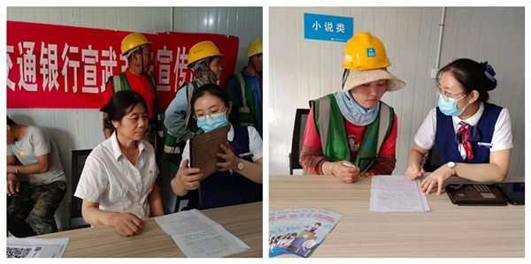 交通銀行宣武支行成立上門服務團隊,客戶經理帶上設備走進項目施工現場,為工人們提供方便、快捷的工資卡開卡服務。