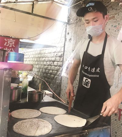 原先,李磊在小區(qū)外擺流動攤,針對的消費人群多是流動的上班族,在小區(qū)內開店,這些消費人群沒了。李磊于是琢磨著從頭開始,打造自己的客戶群。“那時我和父親守店守了4個多月,看著隔壁店家生意好,客人都排隊等著,心里很著急。”李磊告訴紫牛新聞記者,做生意閑暇之余,自己看看手機打發(fā)時間,看到一個賣烤冷面的北方妹子,經常發(fā)一些烤冷面的制作視頻,有時還搞直播,吸引一些網友去吃烤冷面,一些網友去學手藝。“這位年輕女攤主的粉絲有10多萬呢”。