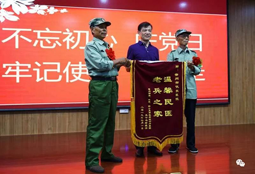 本次建黨節(jié)活動的成功召開,引起了強烈反響,徐州市優(yōu)撫醫(yī)院將以此為契機,“不忘初心、砥礪前行”,用實際行動踐行黨的宗旨,以實際行動向建黨98周年獻禮。優(yōu)撫醫(yī)院的每一位醫(yī)務人員,都將帶著感情,主動、用心、真心的為療養(yǎng)對象服務,配合各級政府部門,做好退役軍人的醫(yī)療服務保障水平,進一步弘揚徐州擁軍優(yōu)屬、擁政愛民的優(yōu)良傳統(tǒng),推動優(yōu)撫事業(yè)全面發(fā)展!