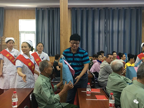 徐州市退役軍人事務局的領導們十分關心革命老前輩們的日常生活,對這次療養(yǎng)活動非常重視,借此“七一”來臨之際,特意為大家?guī)砹宋繂柶,衛(wèi)局長、徐局長親自給老前輩們發(fā)放療養(yǎng)紀念品,表達他們的關心、關愛之情。