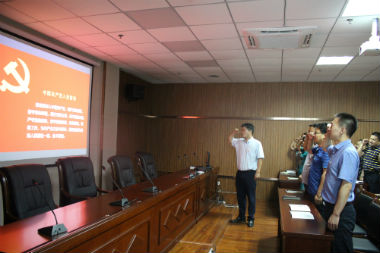 三是組織黨員重溫入黨誓詞。全體黨員在鮮紅的黨旗前舉起右拳重溫入黨誓詞,接受心靈的凈化和洗禮,重溫入黨時的決心和理想,用飽滿的熱情、昂揚的斗志表達作為共產(chǎn)黨員的自豪感與使命感,抒發(fā)對黨忠誠的意志和信念。黨員們紛紛表示,作為新時代的共產(chǎn)黨員,要進一步增強“四個意識”,堅定“四個自信”,做到“兩個維護”,以更高的熱情和更強的使命感、責任感投入到實際工作中。