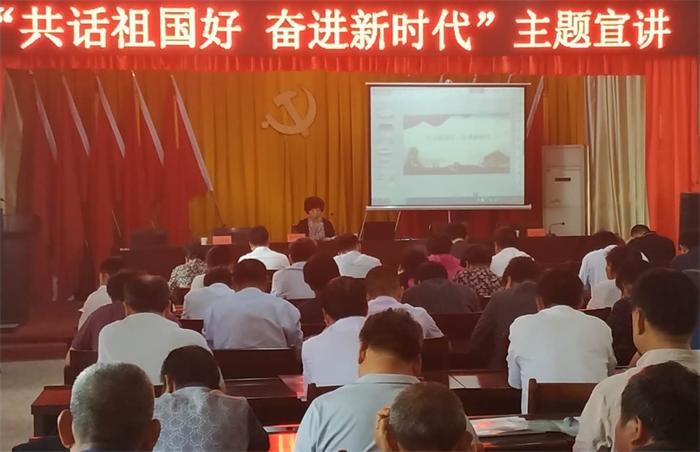 為進(jìn)一步推動(dòng)習(xí)近平新時(shí)代中國(guó)特色社會(huì)主義思想深入人心,營(yíng)造慶祝新中國(guó)成立70周年的濃厚氛圍,由徐州市組織的“共話祖國(guó)好 奮進(jìn)新時(shí)代”基層主題宣講活動(dòng),于5月31日上午在豐縣梁寨鎮(zhèn)在一樓會(huì)議室舉行。參加會(huì)議的有鎮(zhèn)機(jī)關(guān)全體干部,村兩委人員共87人。宣講團(tuán)成員徐州市衛(wèi)生健康委黨委委員、副主任尹葆華同志授課。