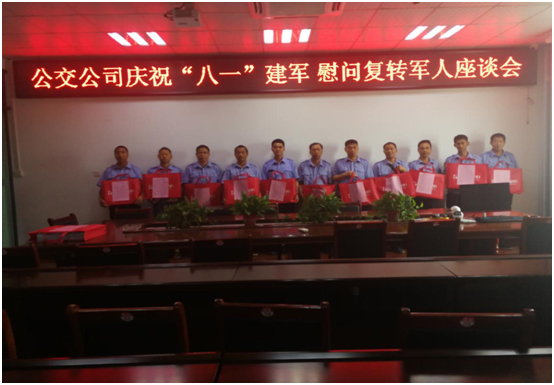 黃淮網(wǎng) 7月31日,豐縣公交組織召開“八一”建軍節(jié)慰問復(fù)轉(zhuǎn)軍人座談會,熱烈慶祝中國人民解放軍建軍92周年,向公司全體復(fù)轉(zhuǎn)軍人致以節(jié)日的祝賀和親切的慰問!本次座談會由副總經(jīng)理楊靜主持。