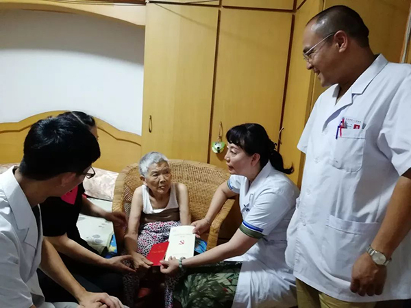 為深入貫徹落實黨的十九大精神,把黨的思想建設(shè)引向深入,加強我院離休黨支部建設(shè),7月23日下午,離休黨支部書記郭陽、機關(guān)一支部書記兼隨訪中心主任孔軼、全科醫(yī)學(xué)科主任史進等人員頂著大暑時節(jié)的炎熱高溫,走訪慰問離休老干部,為他們送去了黨組織的關(guān)愛,送去了“黨建精神食糧”,送去了慰問品,送去了健康。