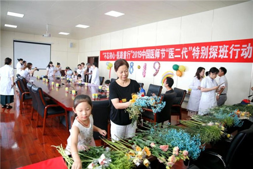 本次活動由院工會出面邀請組織6-12歲的“醫(yī)二代”們,在父母正常工作時,悄悄地前來探班,送上節(jié)日的祝福;院宣傳科用氣球、彩帶、橫幅精心布置會議室,并為孩子們準備好制作賀卡、鮮花的各項物料。