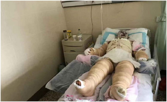 馮現(xiàn)巧的住院醫(yī)師蘇醫(yī)師介紹,馮現(xiàn)巧的燒傷為深I(lǐng)I度創(chuàng)面燒傷,全身68%面積燒傷,其中雙上肢最嚴(yán)重,另伴有吸入性損傷。馮現(xiàn)巧目前正處于創(chuàng)面感染期,應(yīng)盡快手術(shù),去除創(chuàng)面壞死組織,降低感染風(fēng)險(xiǎn)。醫(yī)院在了解到他們的經(jīng)濟(jì)情況后,已經(jīng)最大限度減免了相關(guān)醫(yī)療費(fèi)用。