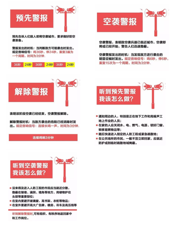 根據(jù)《中華人民共和國人民防空法》、江蘇省《實(shí)施<中華人民共和國人民防空法>辦法》和徐州市防辦要求,為提高全縣人民國防戰(zhàn)備觀念和防空防災(zāi)意識(shí),檢驗(yàn)全縣防空警報(bào)的性能和效果,使廣大市民熟悉防空警報(bào)信號規(guī)定,增強(qiáng)國防觀念,提高人民群眾應(yīng)對突發(fā)災(zāi)害能力,定于9月18日10時(shí)00分至10時(shí)19分,在沛縣進(jìn)行防空警報(bào)統(tǒng)一試鳴。
