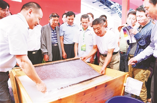 開幕前,帶你提前逛展 去年文博會,觀展的市民絡(luò)繹不絕。 體驗(yàn)宣紙的生產(chǎn)" />